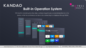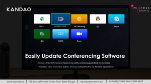As the official and exclusive distributor of KANDAO in Mauritius, Impress Ltd provides expert installation, after-sales support, and warranty services. We help businesses upgrade their meeting rooms into professional hybrid collaboration spaces.