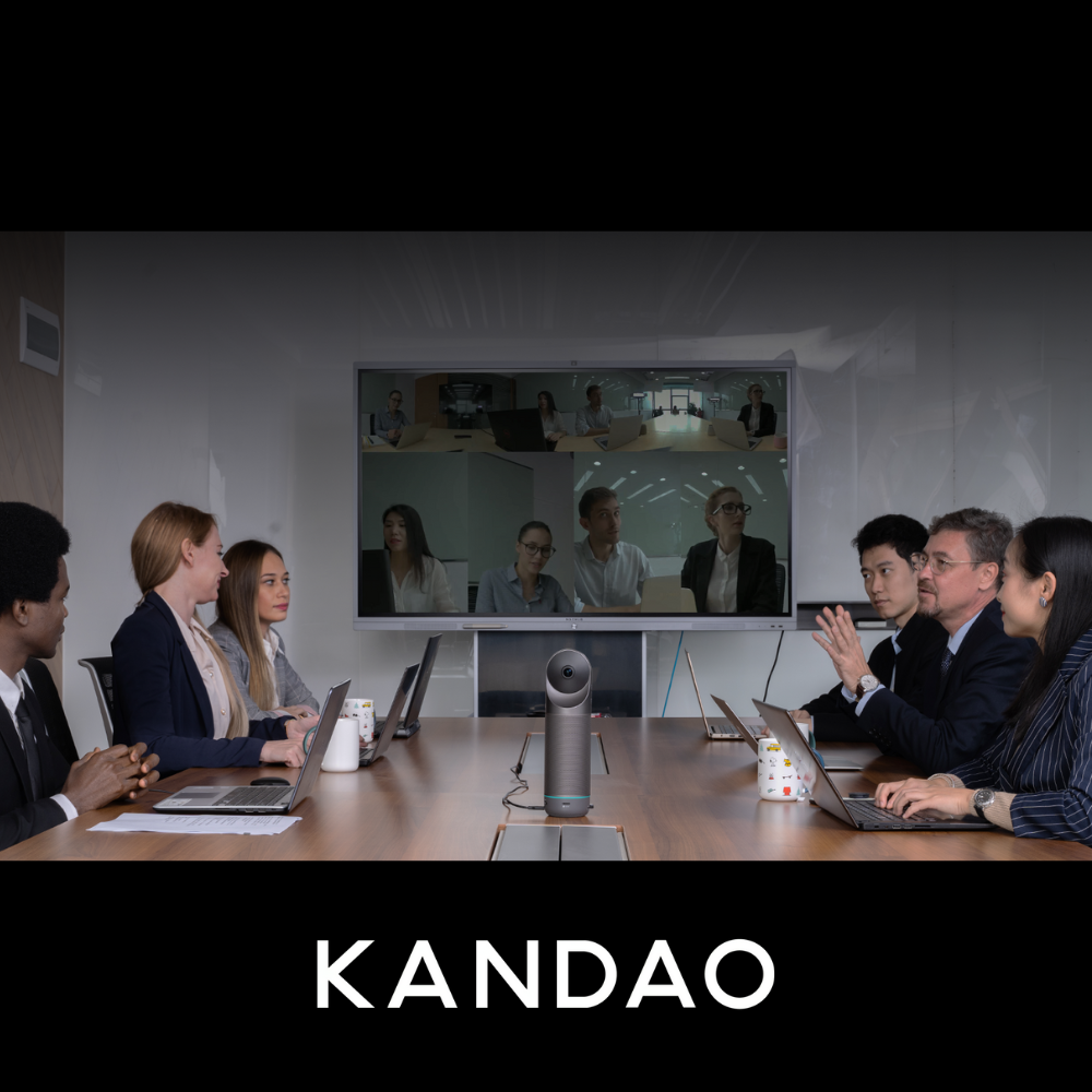 The KANDAO Meeting Pro 360° uses dual 360° lenses to deliver a complete panoramic view of your meeting room. No one gets left out of the conversation — the camera automatically captures every participant and switches focus intelligently, giving remote teams a natural, face-to-face experience.